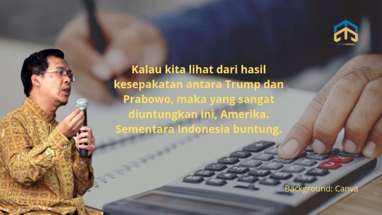 Tinta Media – Merespons hasil kesepakatan antara Trump dengan Prabowo terkait penurunan tarif impor, pengamat ekonomi Dr. Arim Nasim menilai kesepakatan ini membuat Indonesia buntung.