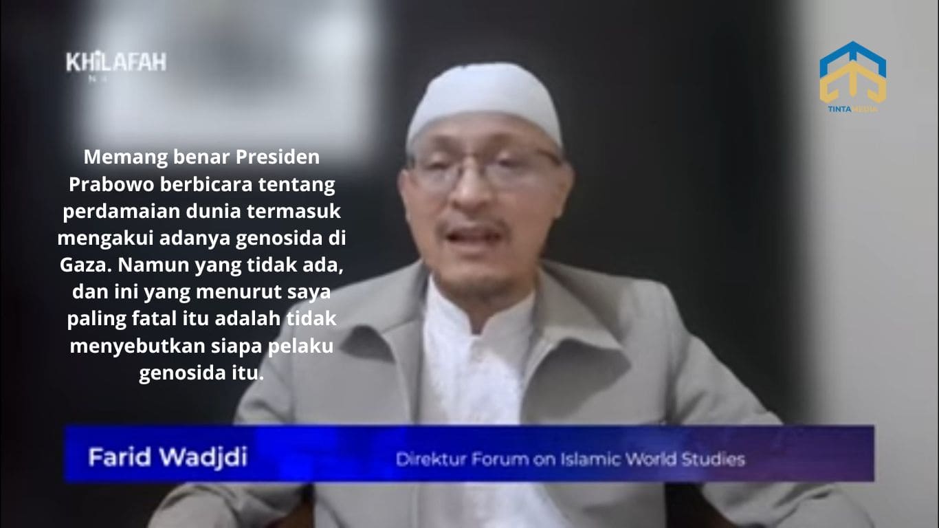 Tinta Media – Direktur Forum on Islamic World Studies (FIWS) Farid Wadjdi menilai pidato Presiden Prabowo Subianto di Sidang Majelis Umum PBB pada Selasa (23/9/2025) tentang perdamaian dunia fatal, karena tidak menyebutkan Israel sebagai pelaku genosida di Gaza.