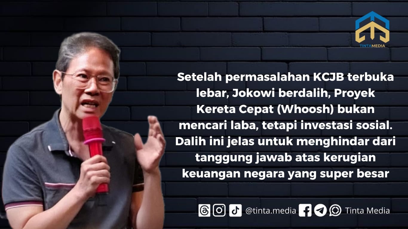 Tinta Media – Political Economy and Policy Studies (PEPS) Anthony Budiawan menilai dalih Jokowi bahwa proyek Whoosh bukan cari laba, tetapi investasi sosial untuk menghindar dari tanggung jawab atas kerugian keuangan negara yang super besar.