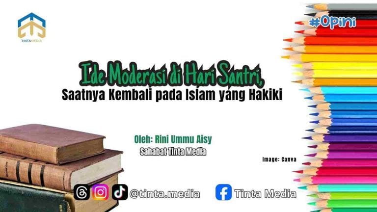 Saatnya para santri kembali pada Islam yang hakiki, memperjuangkan tegaknya Khilafah Rasyidah ‘ala Minhaj an-Nubuwwah. Karena sejatinya, yang dibutuhkan negeri ini bukanlah ide moderasi, melainkan ide Islam yang hakiki. Wallahualam bissawab.