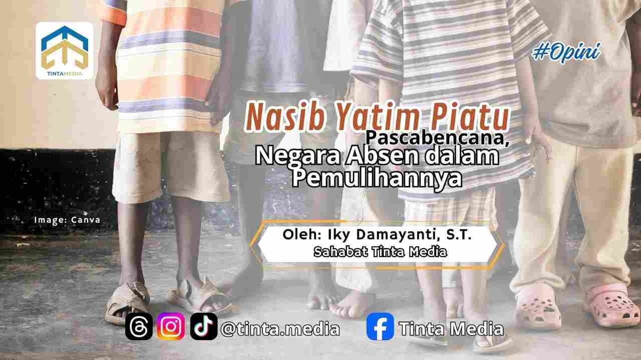 Sungguh miris, hingga saat ini penyelenggara negara belum juga merealisasikan regulasi UU No. 35 Tahun 2014 pada yatim piatu korban bencana. Padahal, pemulihan jangka panjang sangat dibutuhkan. Kegagalan negara ini bukan sekadar kegagalan administratif, tetapi secara normatif menunjukkan regulasi yang mandul dalam praktik.