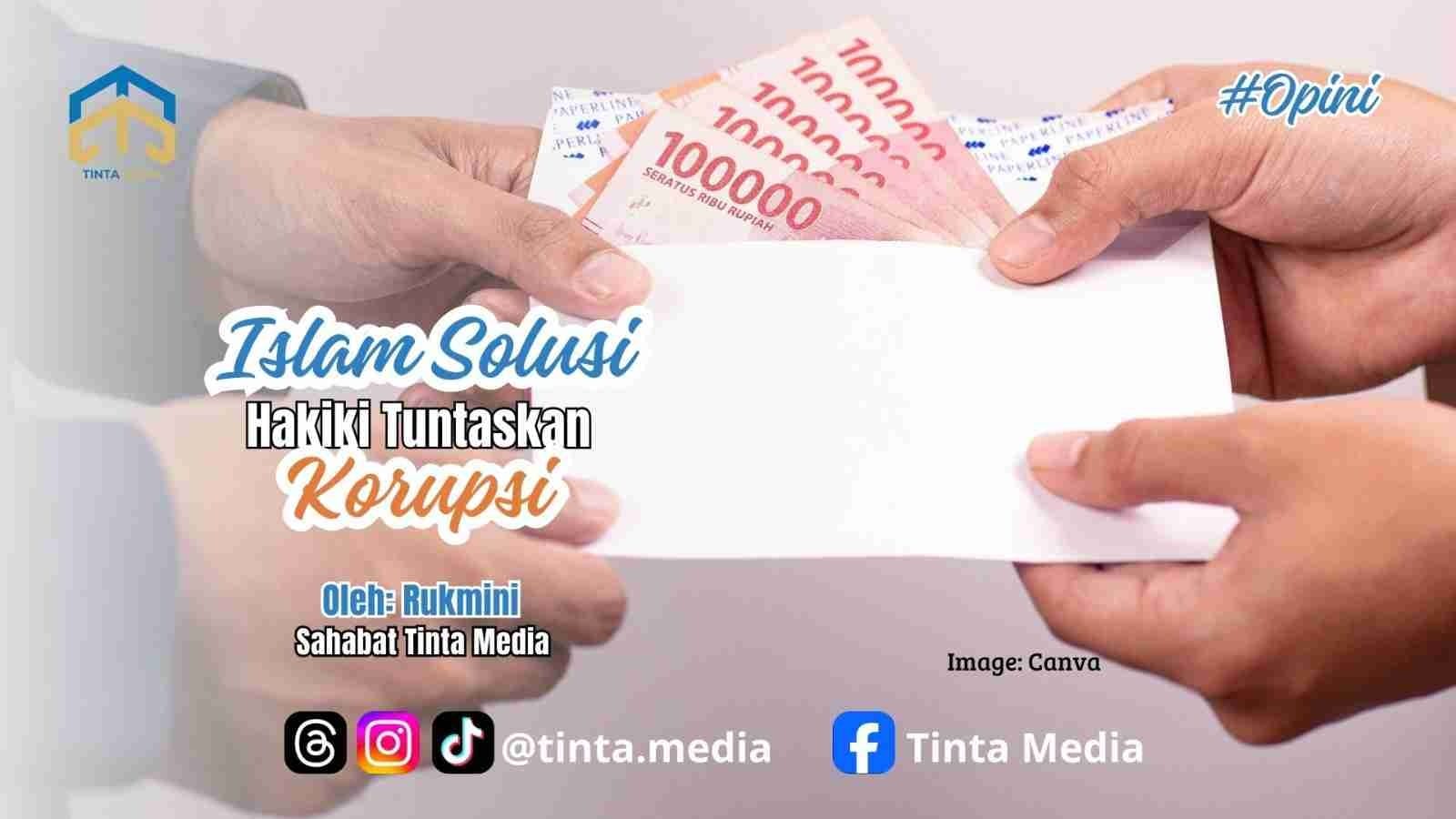 Demikianlah solusi menyeluruh pemberantasan korupsi dalam sistem Islam, solusi tepat hingga mampu menyelesaikan setiap permasalahan hingga ke akarnya. Alhasil, akan terwujud pemerintahan yang bersih sehingga melahirkan kehidupan umat manusia yang adil dan sejahtera. Semua itu akan terwujud jika syariat Islam diterapkan secara menyeluruh (kaffah). Wallahualam bissawab.