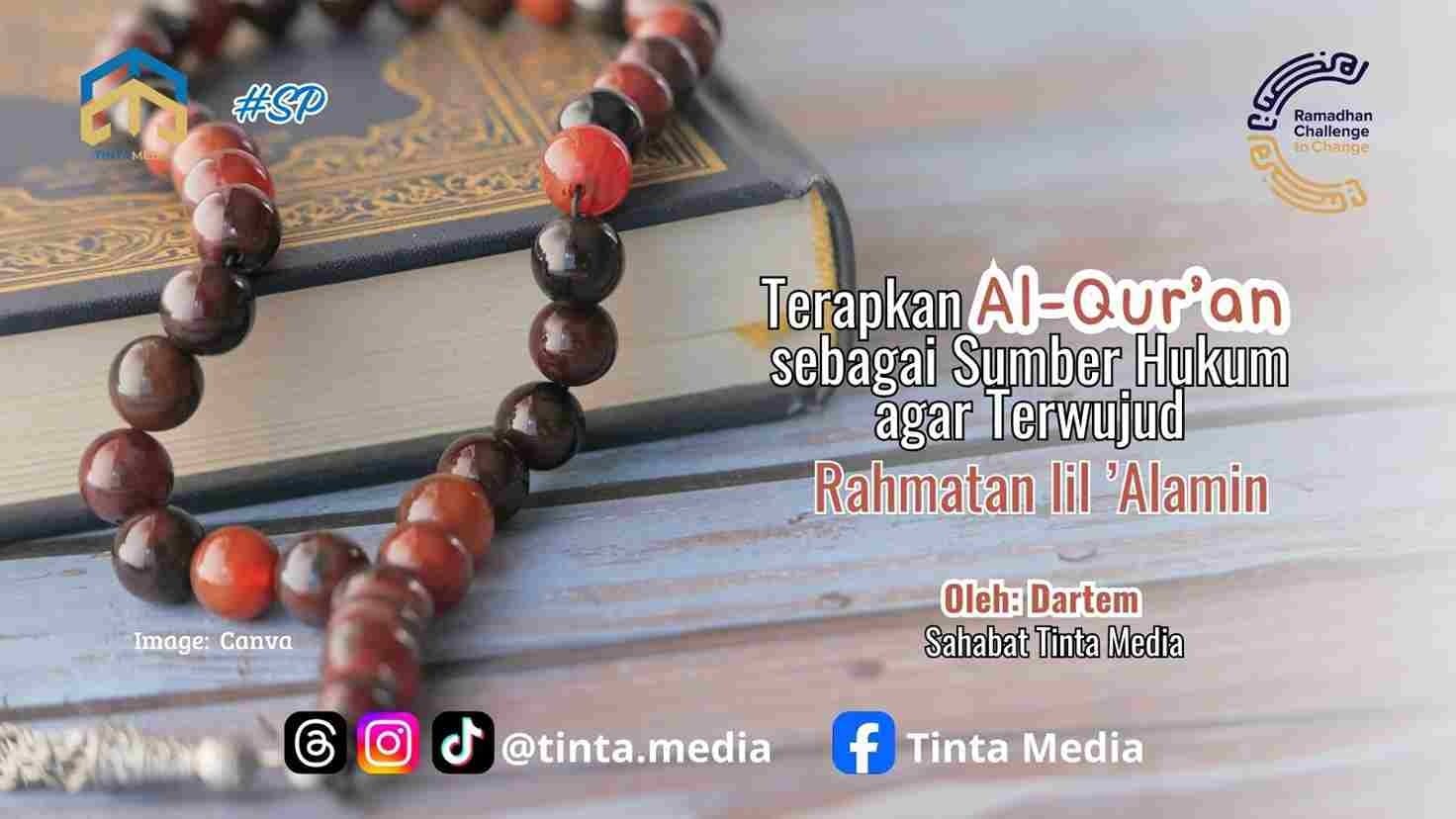 Al-Qur’an adalah pedoman bagi seluruh kaum muslim. Al-Qur’an merupakan sumber hukum yang datang dari Allah sebagai solusi semua persoalan hidup seluruh manusia. Dengan Al-Qur’an, manusia bisa keluar dari kegelapan menuju cahaya. Sudah seharusnya Al-Qur’an itu dijadikan landasan setiap individu, masyarakat dan negara.