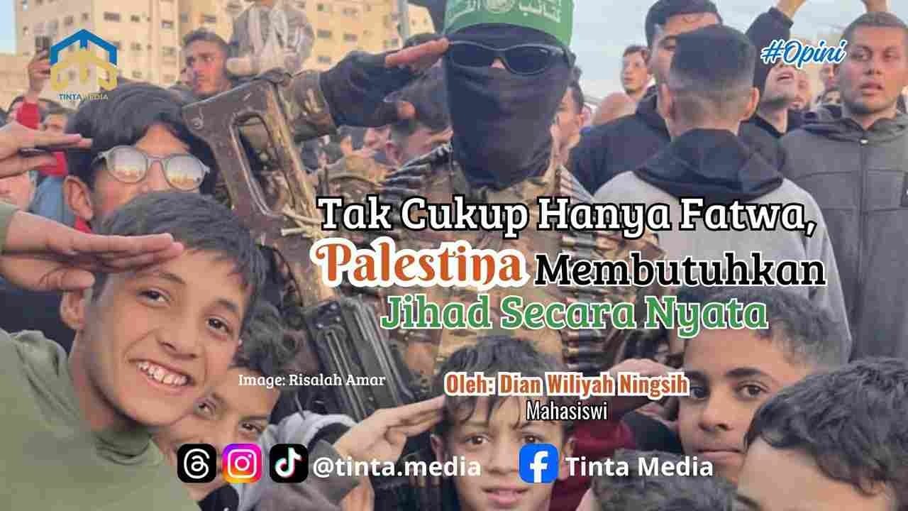 Tidak cukup hanya berfatwa jihad sebagai solusi Palestina jika kaum muslim masih dalam cengkeraman nation state tanpa adanya kepemimpinan yang dapat memberikan komando jihad fi sabilillah. Jihad hanya bisa terlaksana ketika adanya institusi atau kepemimpinan umum bagi kaum Muslimin yaitu Khilafah Islamiyah.
