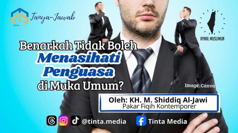 ”Barangsiapa hendak menasehati penguasa akan suatu perkara, janganlah dia menampakkan perkara itu secara terang-terangan, tapi peganglah tangan penguasa itu dan pergilah bersepi-sepi dengannya. Jika dia menerima nasehatnya, itu baik, kalau tidak, orang itu telah menunaikan kewajibannya kepada penguasa itu.” (HR. Ahmad, Al-Musnad, 3/403-404) (Al-Haitsami, Majma’ Al-Zawā`id, 5/232). (0896-7860-4569)